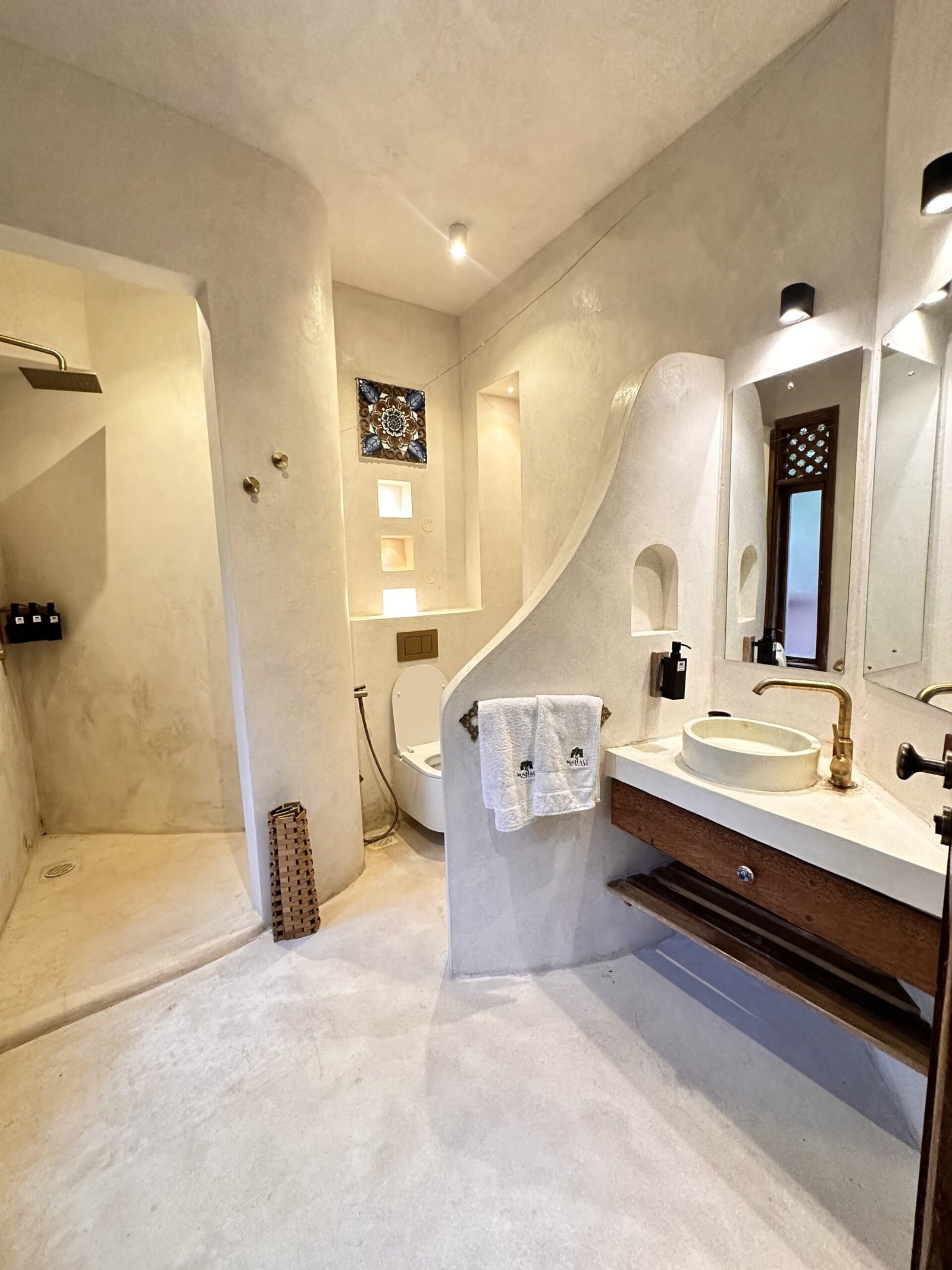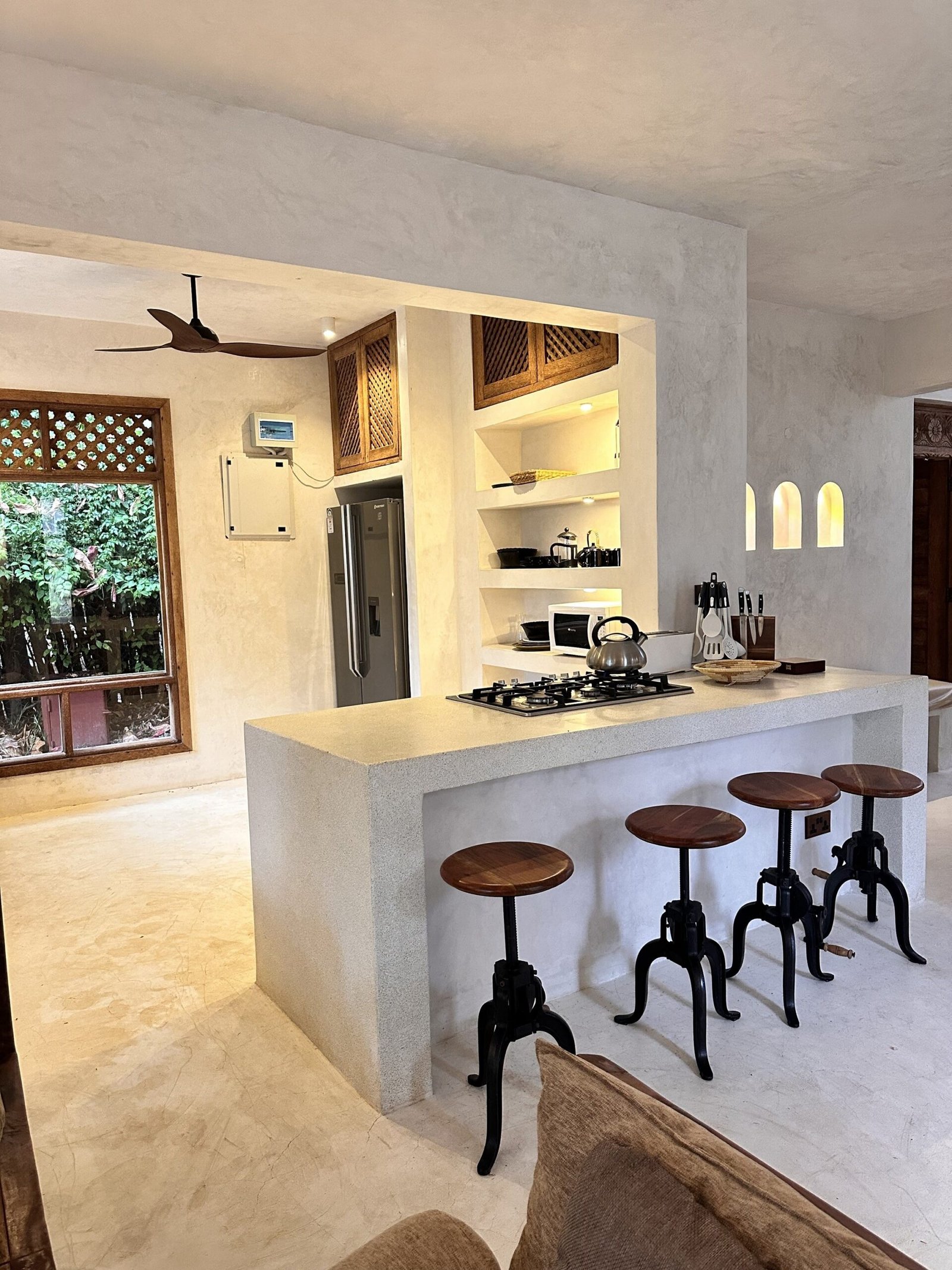 Beach front private villa featuring in room private jacuzzi and private rooftop seating with spectacular views. This villas is contained on the ground level.